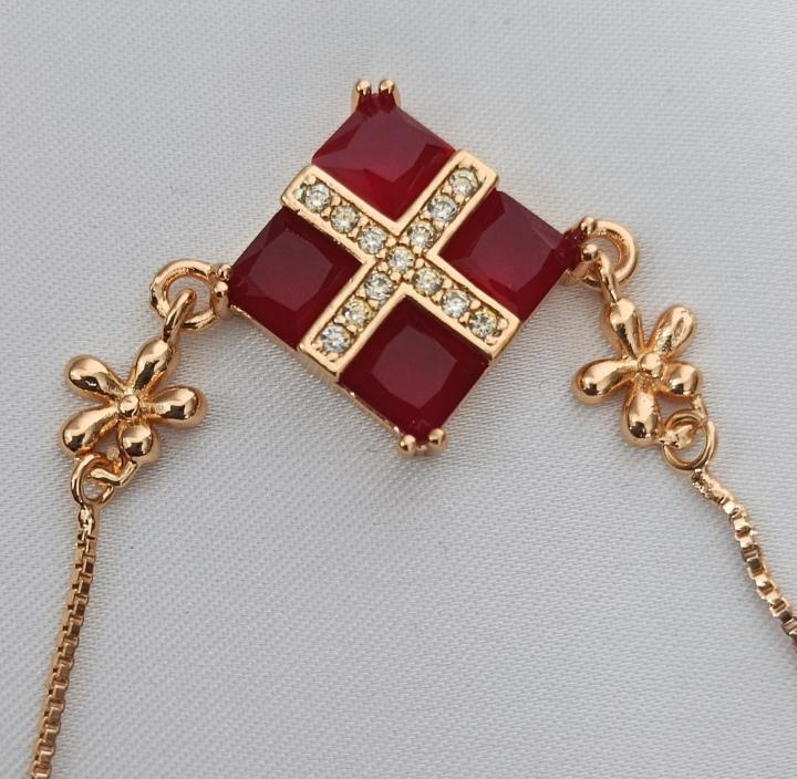 adjustable gold plated red bracelet with silver pearls